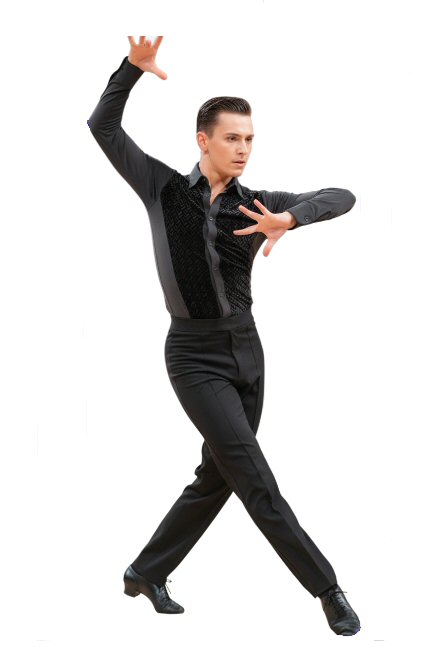 Black Snake effect Raglan cut, stretchy Latin shirt on shorts. Single cuff with button. Black. |