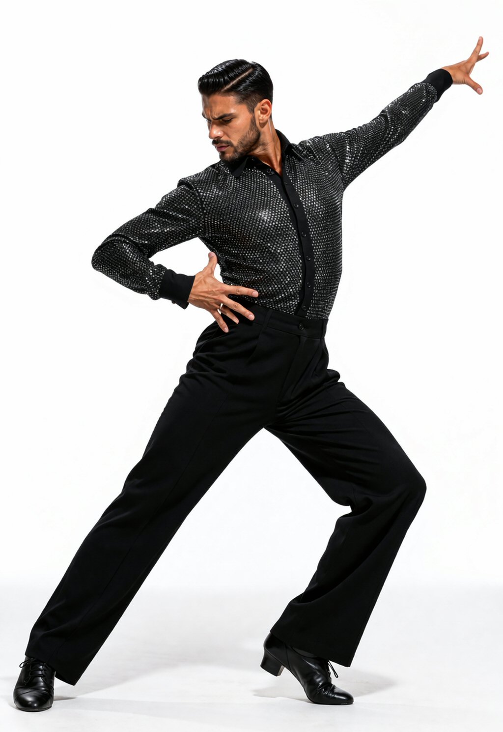 Black Snake effect Raglan cut, stretchy Latin shirt on shorts. Single cuff with button. Black. |
