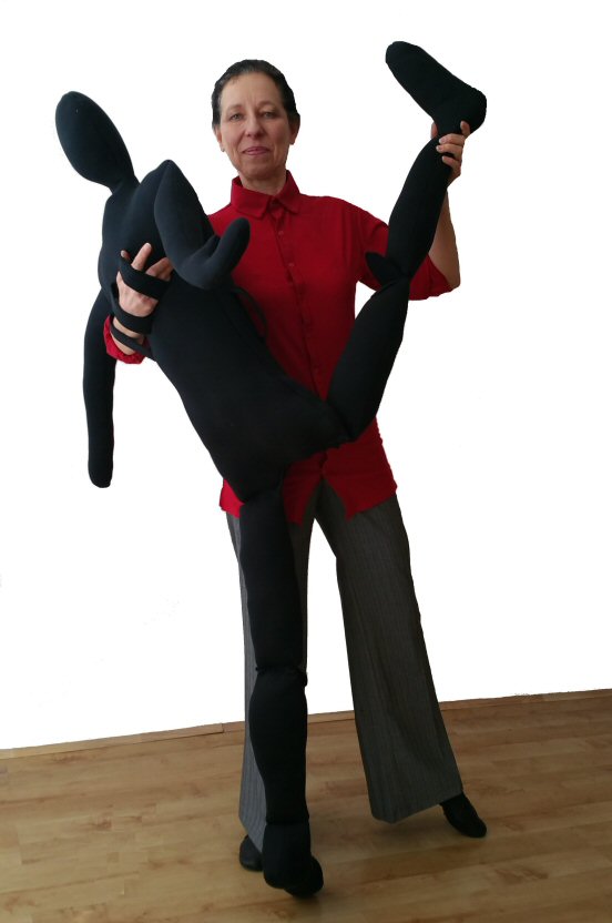 Handy Parter is a soft doll with a heigth of an average female ( 5ft 5in) weighting approx 1.5kg. Its legs bend in hips and in the knees. It allows you to practice your dance moves with a body in the absence of a real partner, but it can also be a useful prop even if you do have a partner.