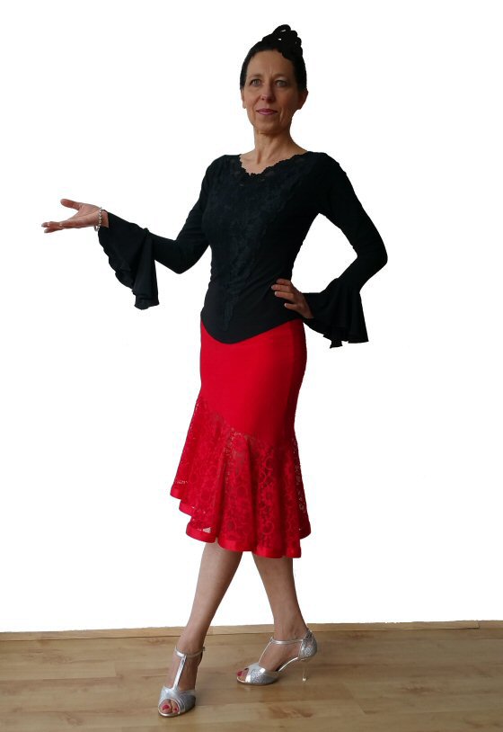 rising the hem for a different, more latin look.