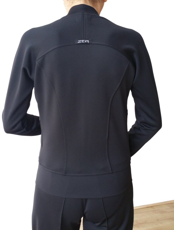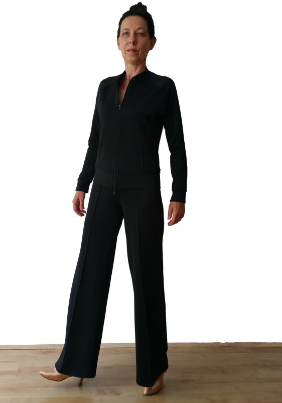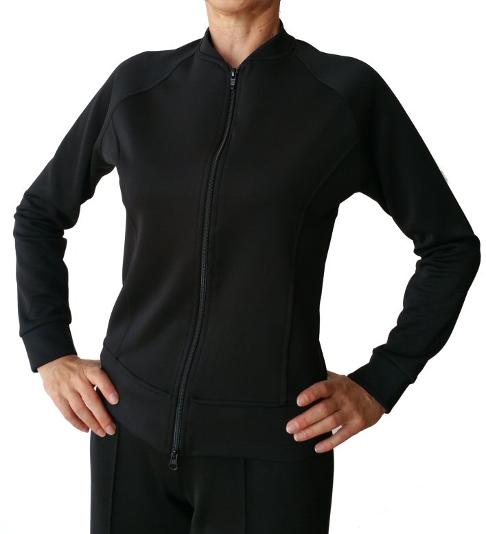 This very practical unisex jacket is a pefect garment to wear before and after your dancing session. Two handy pockets closed with zip will securely hold your phone, wallet etc. High quality zip can be opened from the top and from the bottom. The jacket is made from the same fabric as all our "Heavenly stretchy" trousers, which are available in four versions for ladies (see below this page) and one version for men (see Mens trousers page). The fabric is very easy care: machine washable, dry quickly and do not require ironing. Totally crease resistant. Throw them into a bag, take them out and they look perfectly fresh. Available in UK ladies sizes from 6 to 14 and mens sizes 36-42 inch chest. It can also be made in Custom size. |