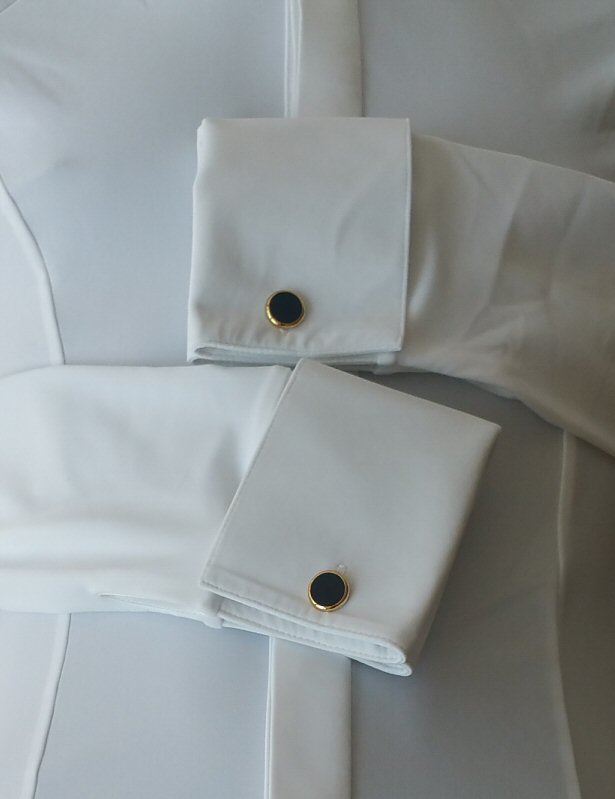 Requires cufflinks, four dress studs, separate plastic or cotton collar, two collar