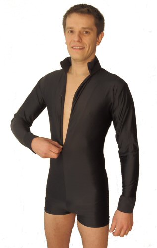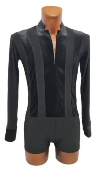 Body shirt built on shorts with zip and unique black/silver motif around the front line. Machine washable. |