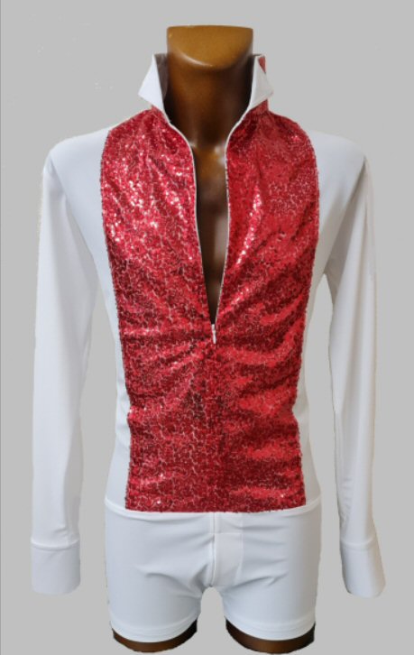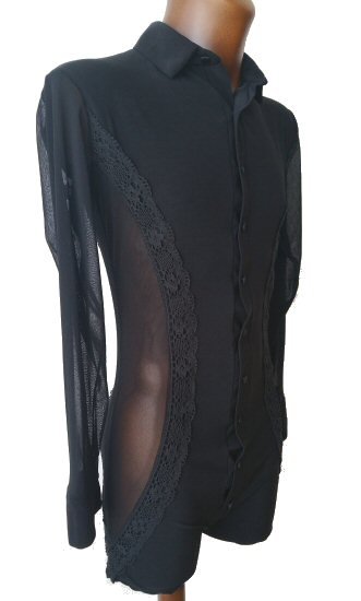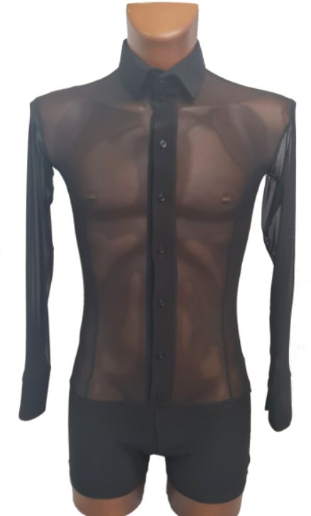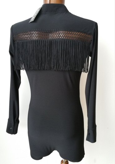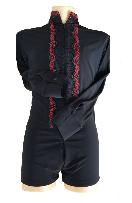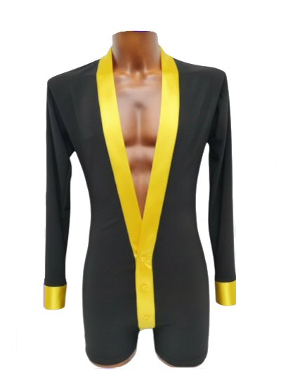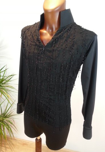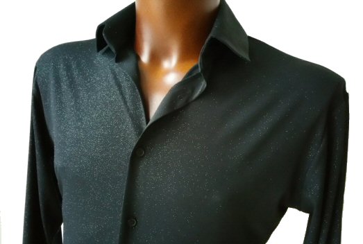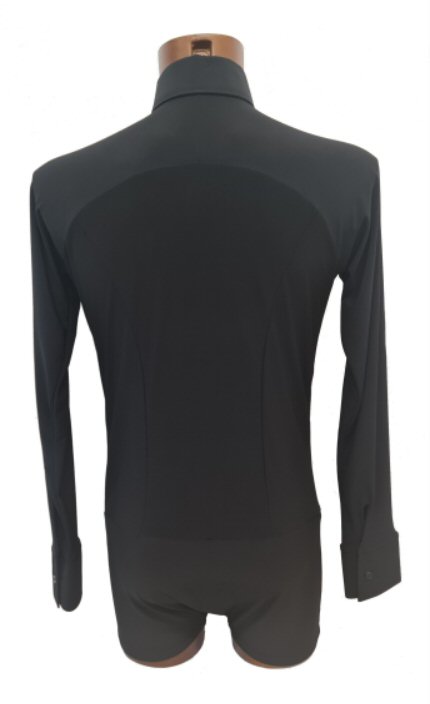 Black Snake effect Raglan cut, stretchy Latin shirt on shorts. Single cuff with button. Black. |