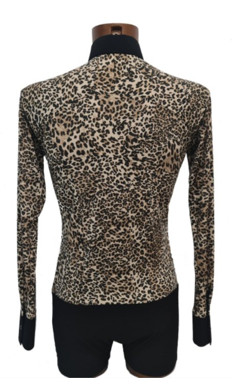 Very soft, two way stretch crepe. The shirt is built on shorts, so it will never pull out from your trousers. Buttons behind a front pleat. Long sleeve is finished with a single cuff with button. Short sleeve is finished with Animal print edging. We also have a plain Black or White version of this shirt |