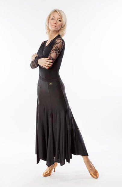 Ladies Ballroom panel skirt made in soft, stretchy crepe. |