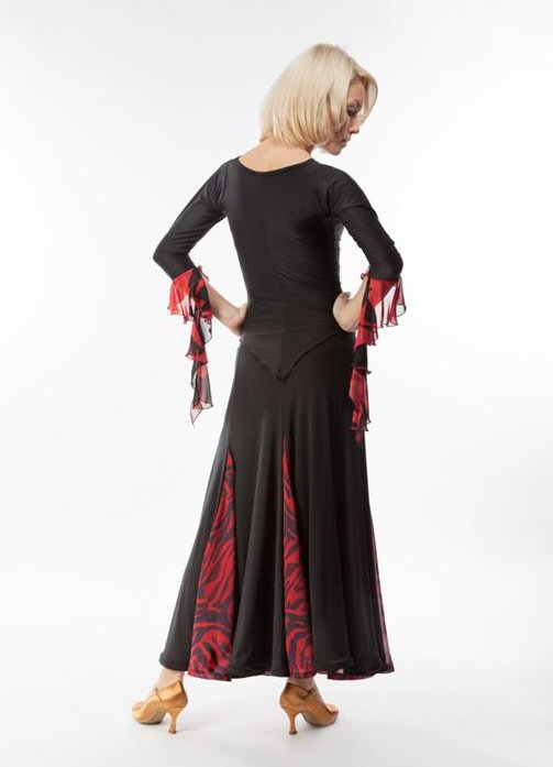 Ladies Ballroom panel skirt. Available in Black/Red flowers georgette and Black/Fantasy pattern. Matches Rina top ( see item above). |